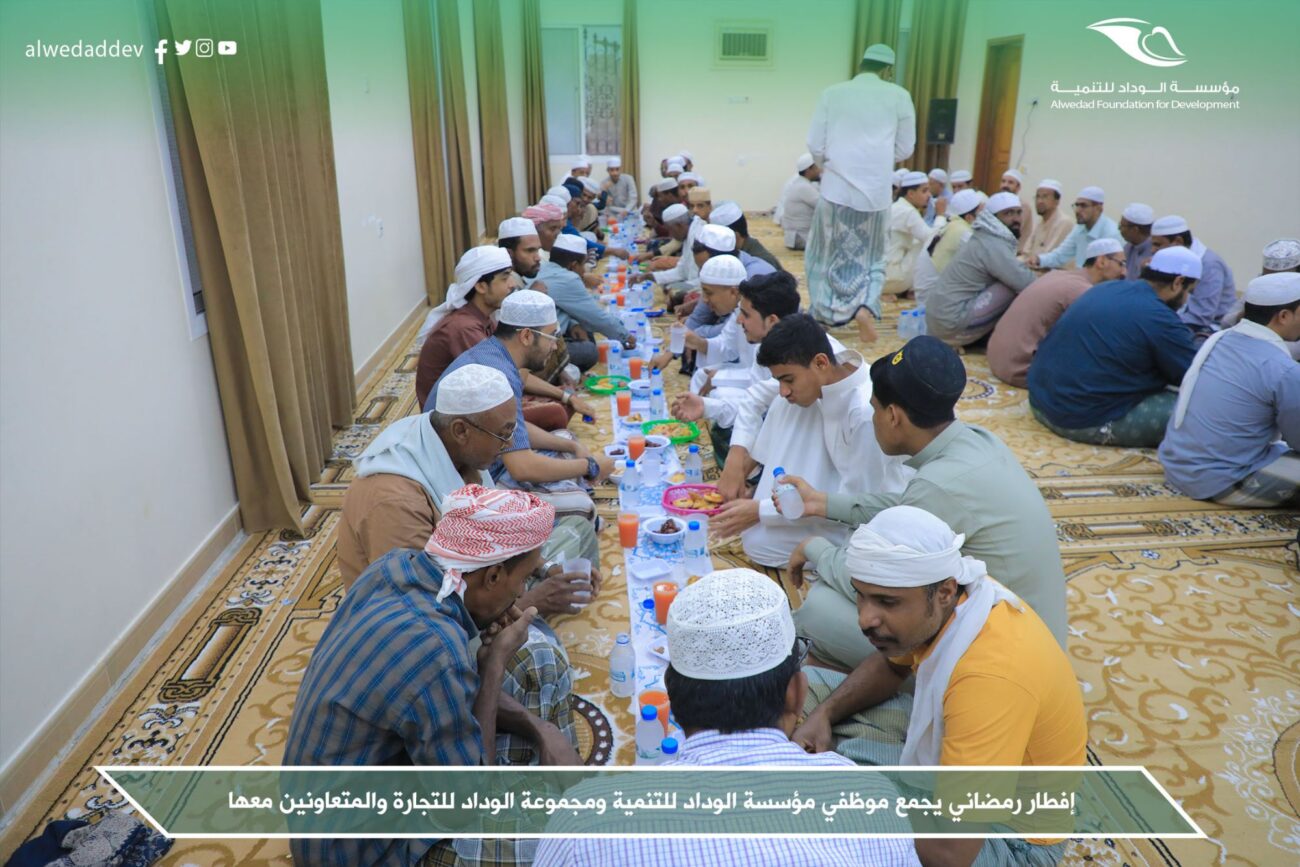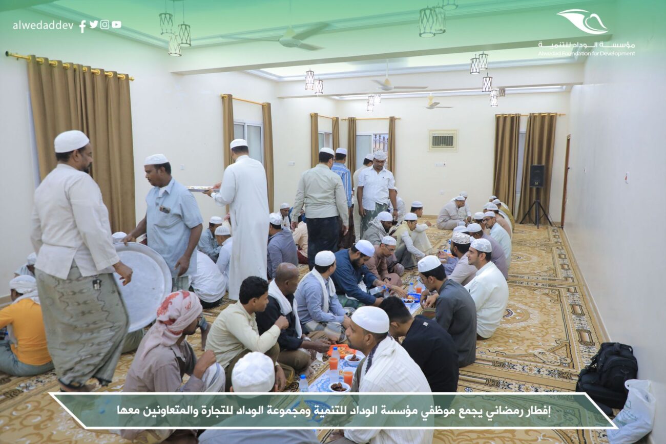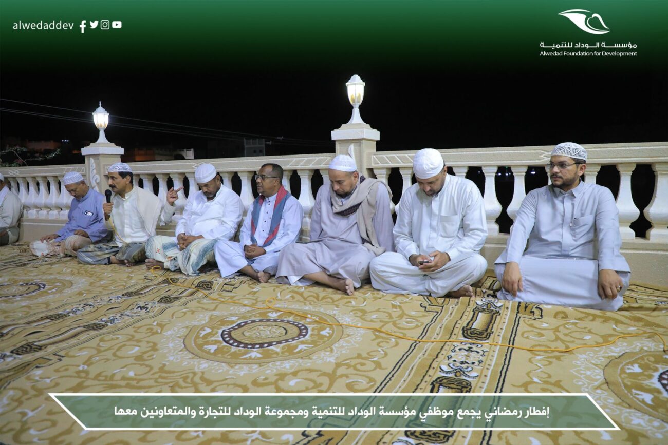 في إطار احتفالات شهر رمضان المبارك وتحت شعار” الإخاء والمحبة”، نظمت مؤسسة الوداد للتنمية بالتعاون مع مجموعة الوداد للتجارة إفطاراً رمضانياً. حضره عدد من الشخصيات،منهم الأستاذ محمد عبدالله باشعيب (مدير مكتب وزارة الشؤون الاجتماعية والعمل بمديرية تريم ) والأستاذ عبدالله حسن بن سهل( مدير مكتب السياحة بمديرية تريم) والدكتور صالح مهدي الحداد ( مدير مكتب قسم البيطرة الصحي بوادي وصحراء حضرموت ) والسيد عبدالله بن أحمد مولى الدويلة ( رئيس المؤسسة) والسيد حسين بن علي السقاف (المدير التنفيذي).