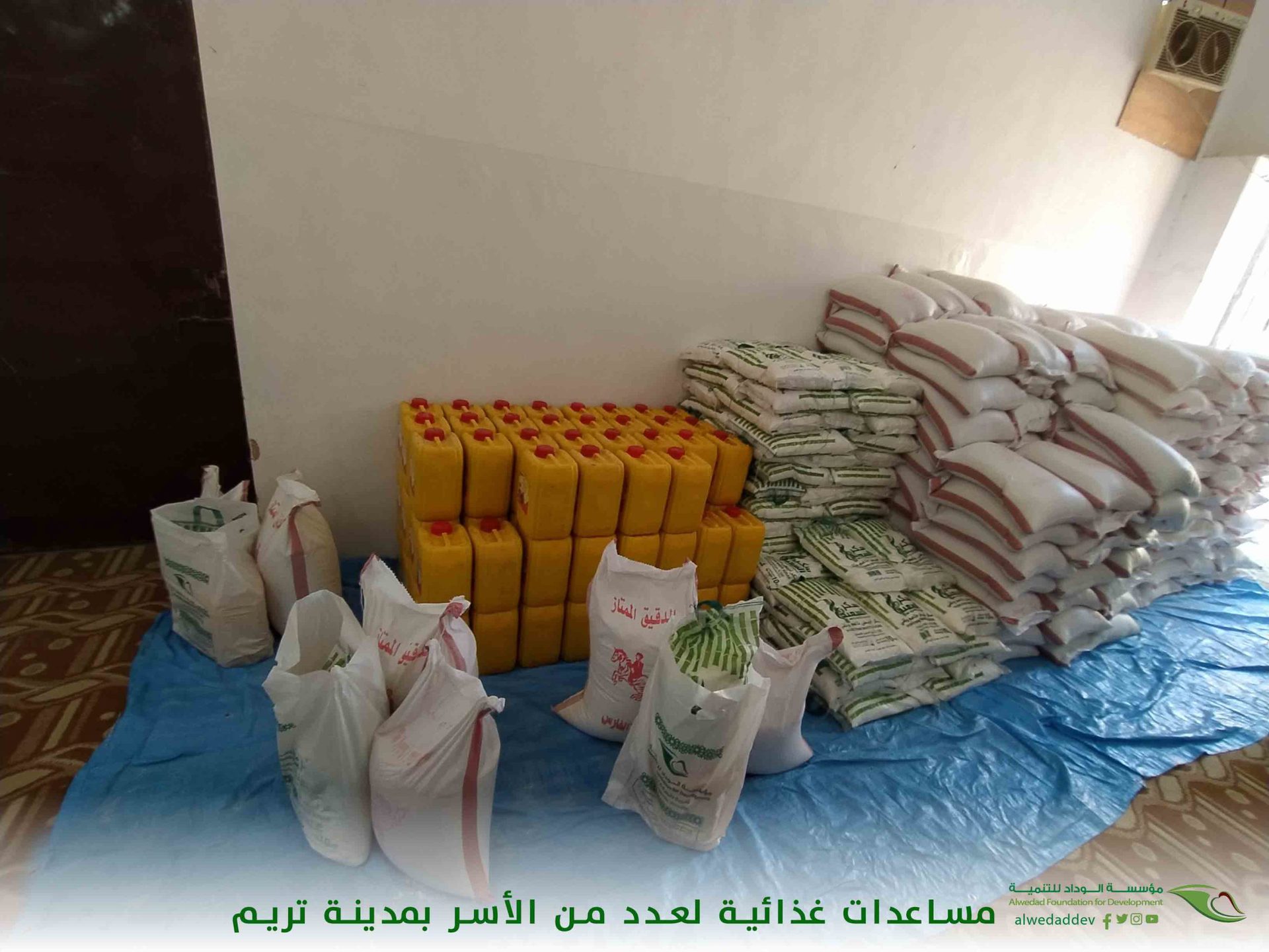 نفذت مؤسسة الوداد للتنمية يوم أمس الإثنين 11 صفر الموافق 28 سبتمبر 2020 م حملة توزيع مساعدات غذائية لعدد من الأسر المحتاجة في حارات مدينة تريم بمحافظة حضرموت، حيث بلغت عدد السلات الغذائية الموزعة نحو 361 سلة غذائية ل 361 أسرة مستفيدة وتقدر سعر السلة الواحدة 150 ريال سعودي وإجمالي المبلغ العام للحملة 54150 ريال سعودي.