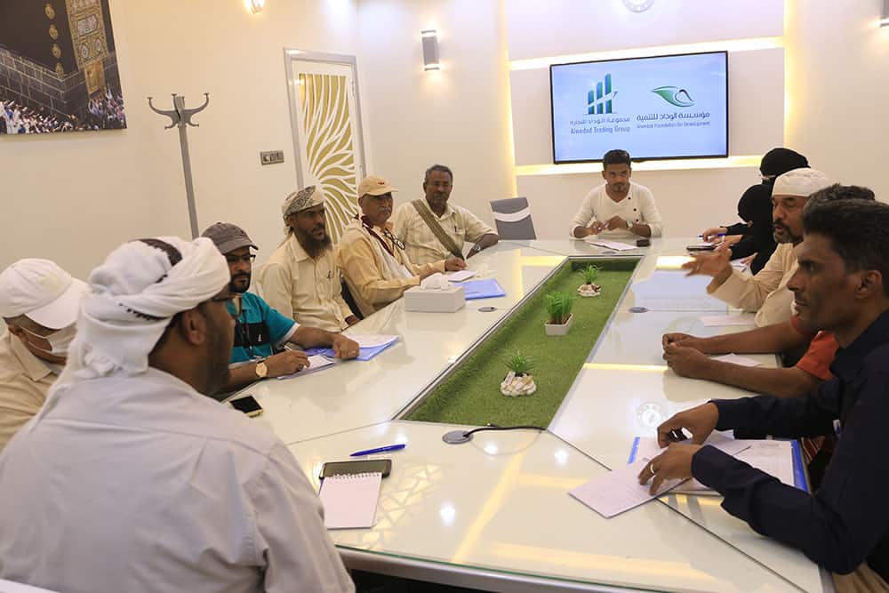 The Director-General of Tarim District – Hadramout Governorate, Mr. Khalid Awad Huweidi, with the Director of Public Works and Roads, Mr. Salim Salih Ya’mer, and Mr. Awad bin Hamel, the former director of Mukalla District, made an official visit to the new building of Al-Wedad Foundation for Development, where they were received by the Chief Executive Officer of the Foundation, Mr. Abdullah bin Ahmed Mula Al-Daweilah.
